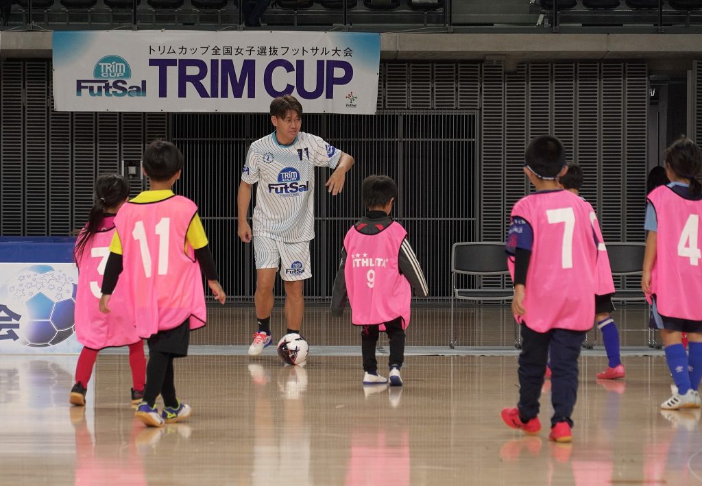 アスリート委員会は、11月30日に京王アリーナTOKYO(東京都調布市)にて開催された日本トリム Presents 第17回全国女子選抜フットサル大会の決勝戦前にキッズ向けとレディース向けのフットサルクリニックを実施しました。