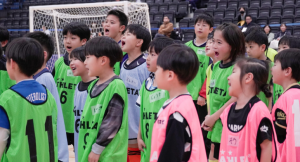 第26回地域大学フットサルチャンピオンズリーグの決勝戦前にキッズ向けのフットサルクリニックを実施しました。